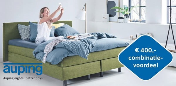 Tot €400,00 voordeel op de Original Boxspring. 10% voordeel bij een combinatie van bed, bodem en matras. Het ultieme slaapcomfort