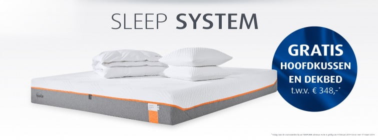 Tempur SleepSystem Actie! Tijdens deze actie ontvang je een gratis TEMPUR® Comfort Original hoofdkussen en TEMPUR® Classic eenpersoons dekbed t.w.v.