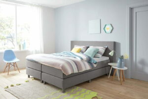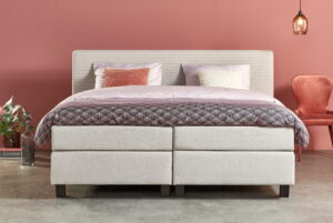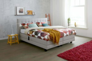 De boxspring, de gestoffeerde matrassen, het hoofdbord, het voetbord en eventueel de TV-lift worden standaard in één en dezelfde stof en kleur gestoffeerd. Hierbij heb je bij de meeste merken keuze uit talloze stoffen in verschillende kleuren. Kies je voor een tijdloze stof in antraciet? Of een moderne stof in een eigentijdse kleur? Ons advies is om een ‘veilige’ tijdloze kleur te kiezen. Een boxspring kan met gemak 20 jaar meegaan, dus ook over 20 jaar moet het nog steeds bij de inrichting van de slaapkamer passen.
