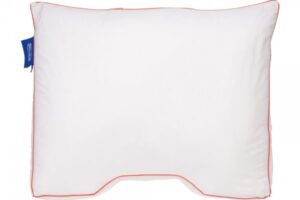 Een stevig kussen van traagschuim dat dankzij de golvende vorm zowel aan de hoge als aan de lage kant te gebruiken is.