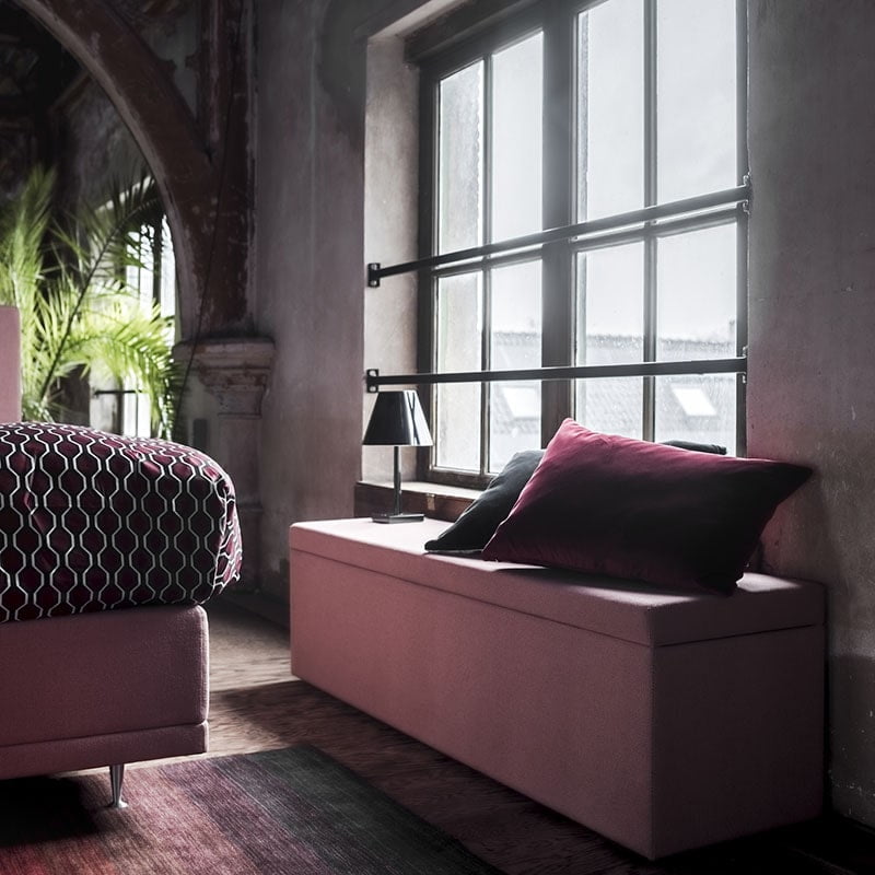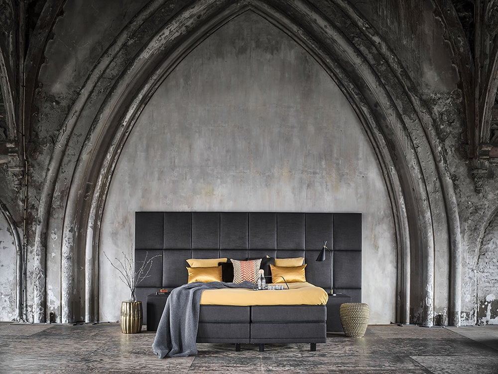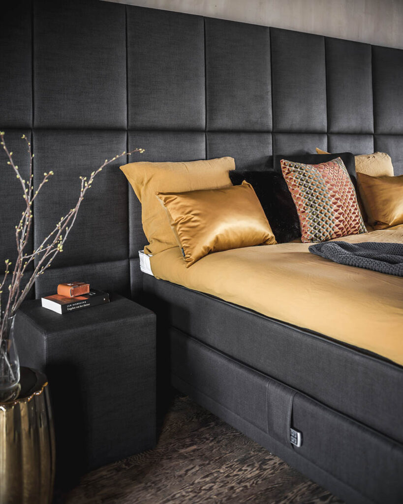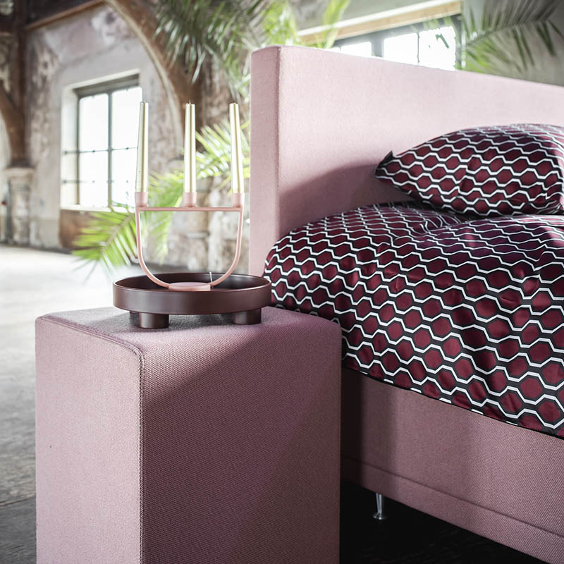 Een uiterst moderne look & feel door het rechttoe rechtaan design. Zelfs de matrassen kunnen in de kleur van het bed gestoffeerd worden.