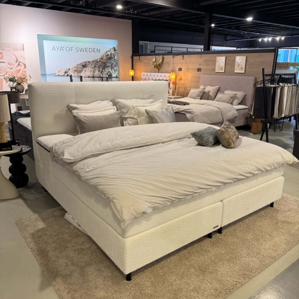 Door een Wisseling in de AYA of Sweden boxspringcollectie verkopen wij ons showroommodel nu wel tegen een hele scherpe prijs!