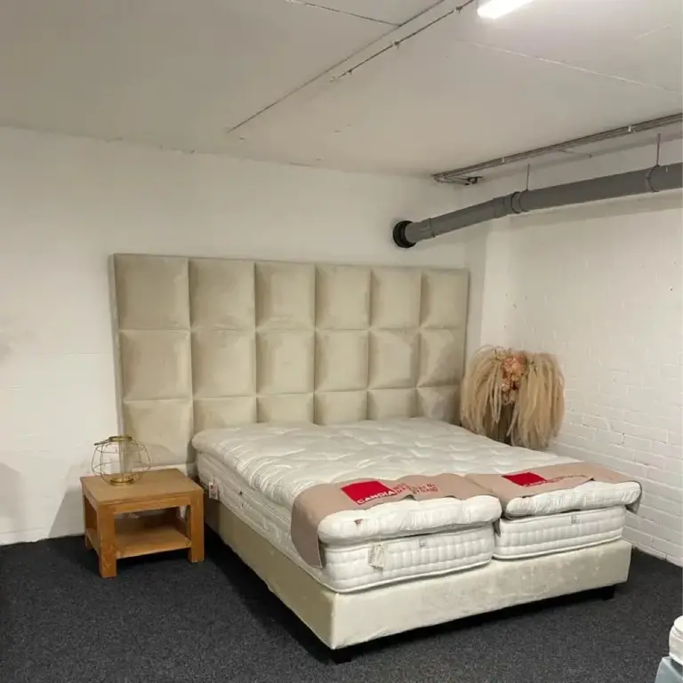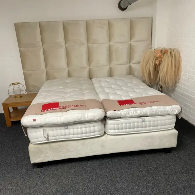 Door een wisseling in onze Passie voor Slapen Premium collectie verkopen wij ons showroom model nu wel voor een heel scherpe prijs! Deze boxspring bestaat uit 2 vlakke Boxsprings die horizontaal geplaatst zijn, dit geeft een totaal ander aanzicht aan uw boxspring dan een standaard boxspring. Het hoofdbord hebben we extra hoog gemaakt zodat de boxspring een echte eye catcher is in de slaapkamer.