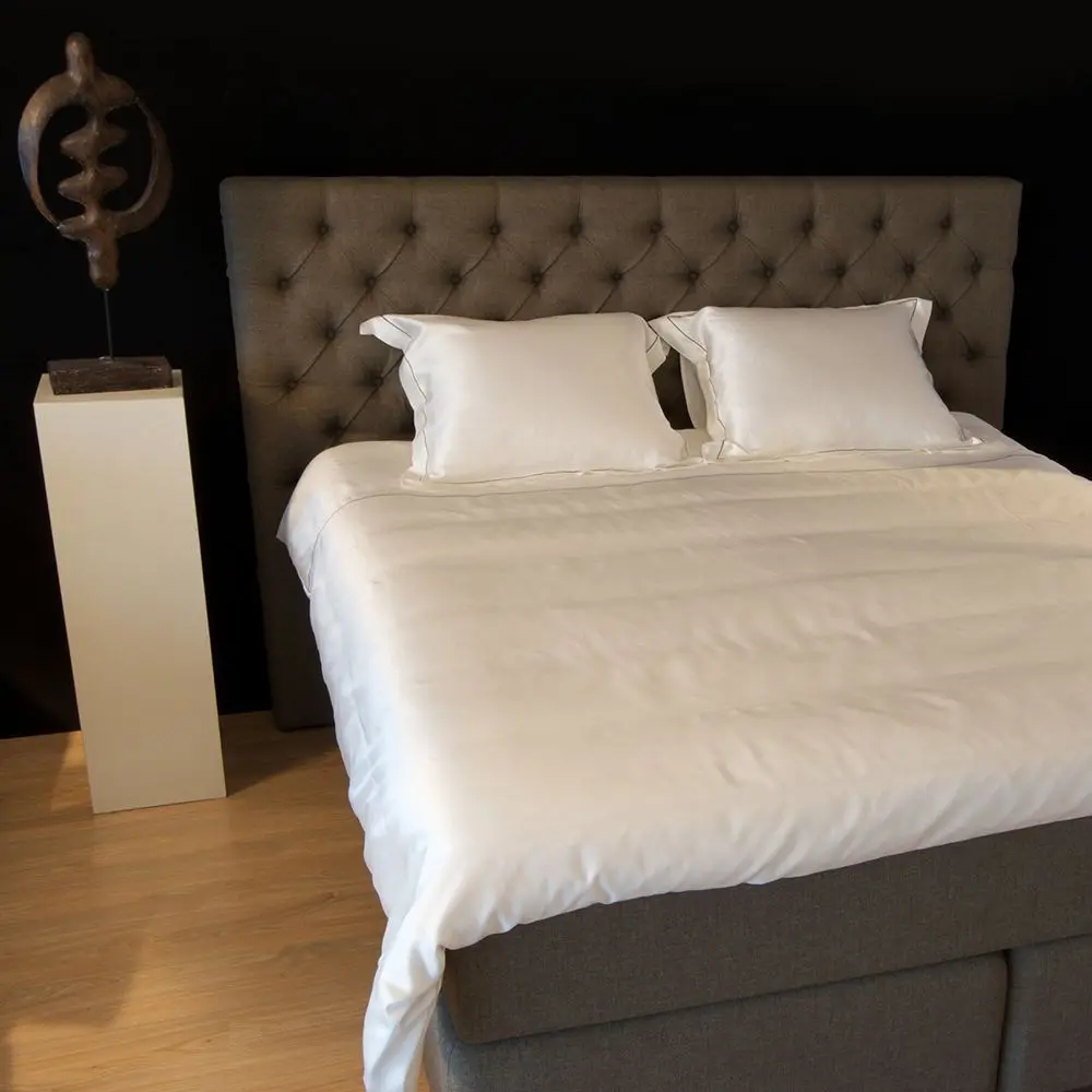 Dit zijden dekbed in de kleur ivoor is een echte meerwaarde in uw slaapkamer. De stof heeft een prachtige natuurlijke glans en elegante kleur die past bij ieder interieur. Daarnaast voelt het heerlijk zacht en sensueel aan, een slaapervaring die u nog nooit heeft beleefd.