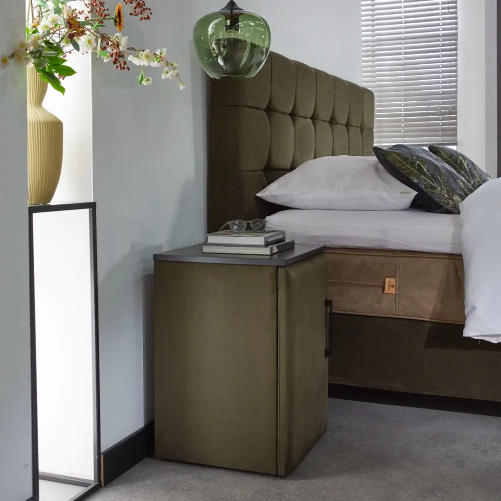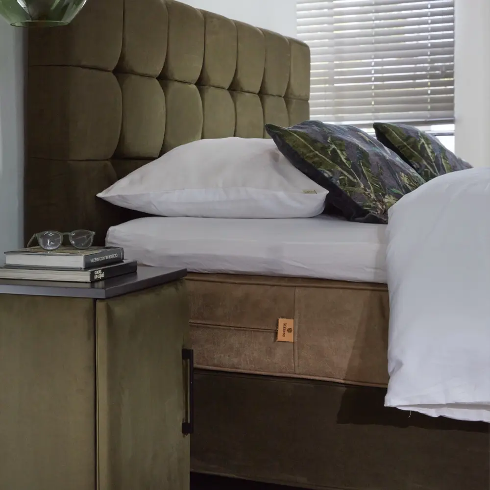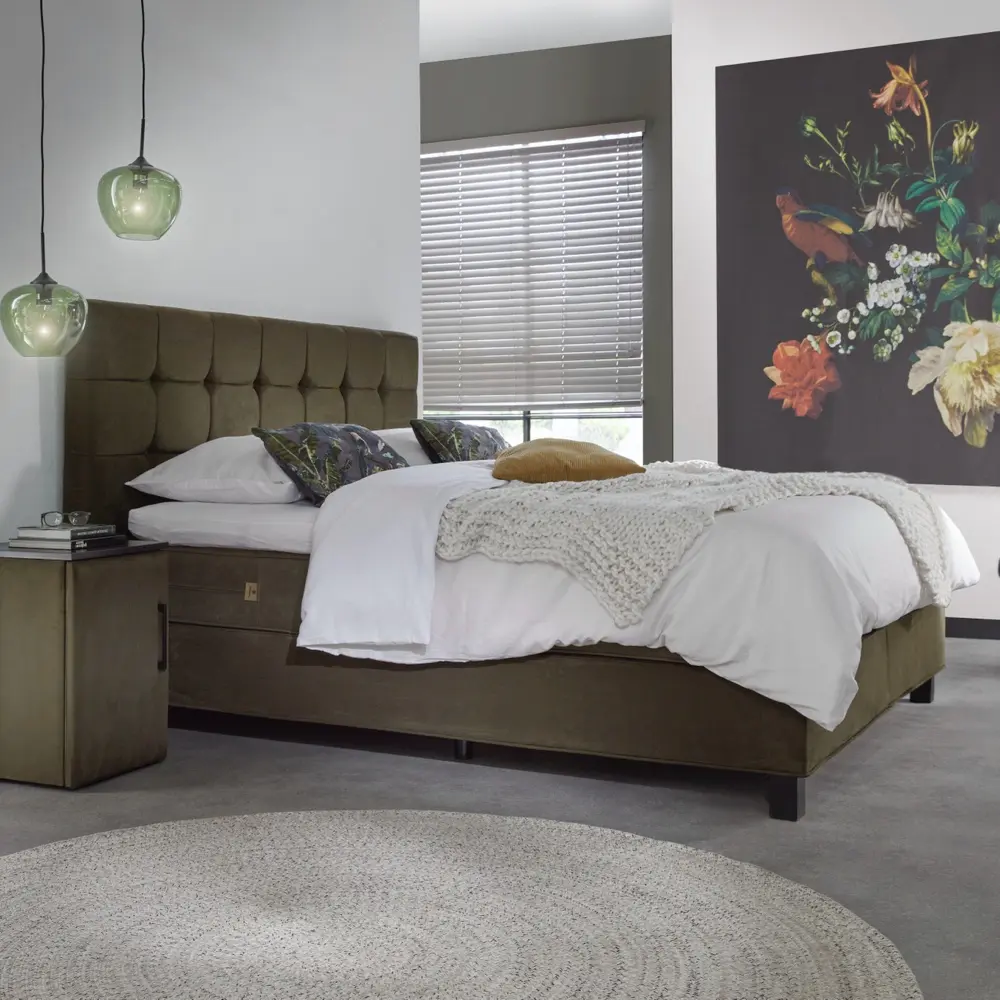• Opties: Boxspring natural / Boxspring elektrisch verstelbaar / Witte matrassen Annabelle of Beatrice / Nachtkasten / Luxe potenset / Keuze uit diverse stoffen en kleuren